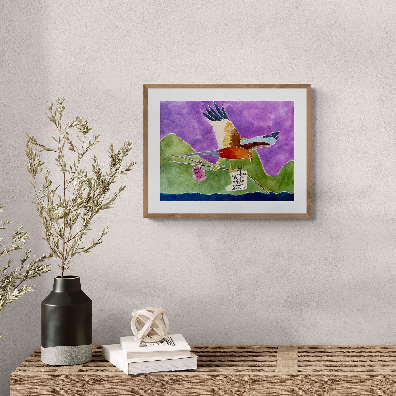 Marsh Harrier flying angry to the airport because her son forgot his passport and acceptance letter to be an exchange student abroad.